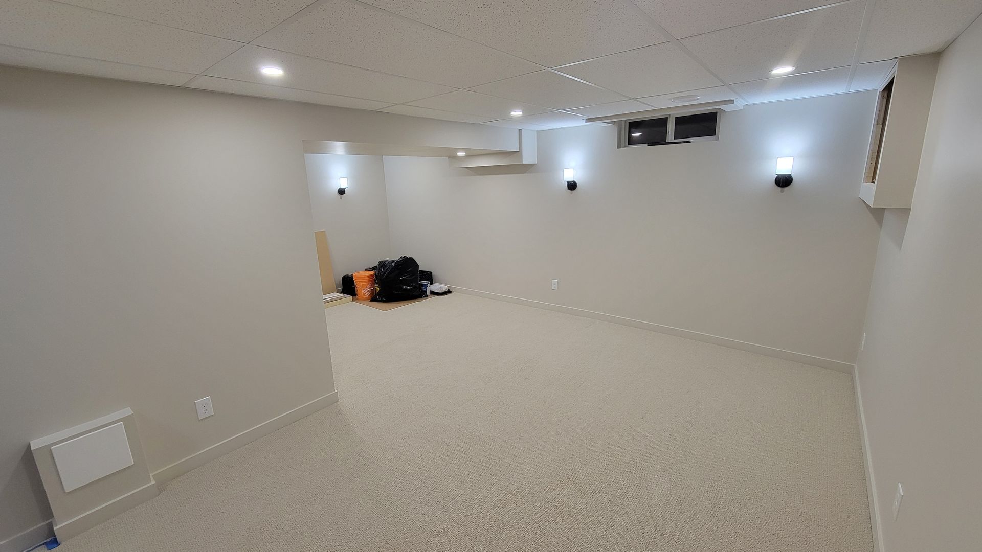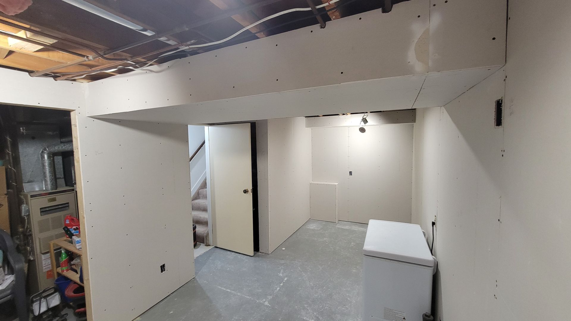 Once inspections are passed the basement starts to look like a finished space for the first time. Walls are boarded, taped, and finished to a consistent standard throughout. Every surface is properly prepped and primed before paint goes on.